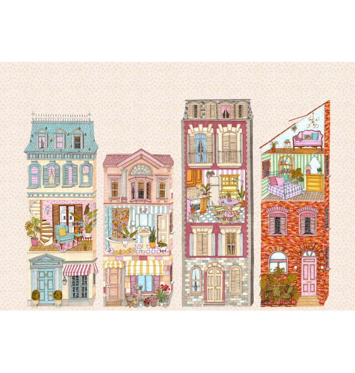 Un'illustrazione su larga scala finemente dettagliata che ti porta all'interno della casa delle bambole. Perfetto per trasformare la cameretta o lo spazio giochi di un bambino.