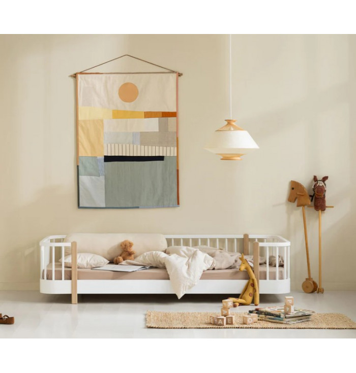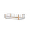 Part of the Wood Original collection, the bed is finished with white-oiled solid oak legs and can easily be transformed into other versions of the series, following the child's different stages of growth.