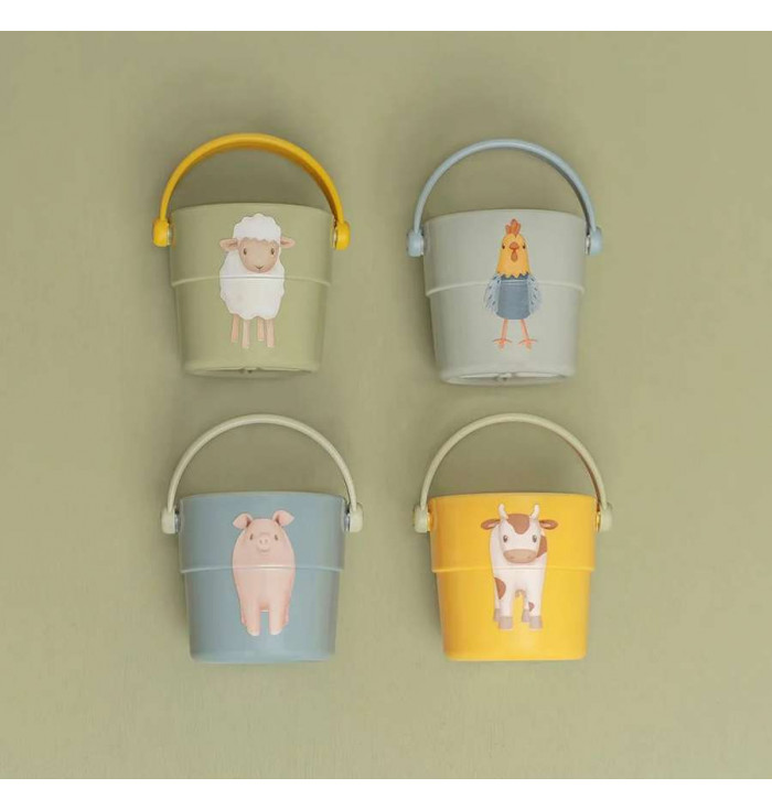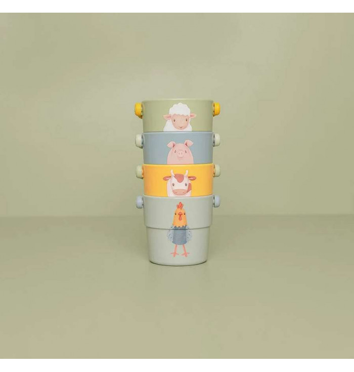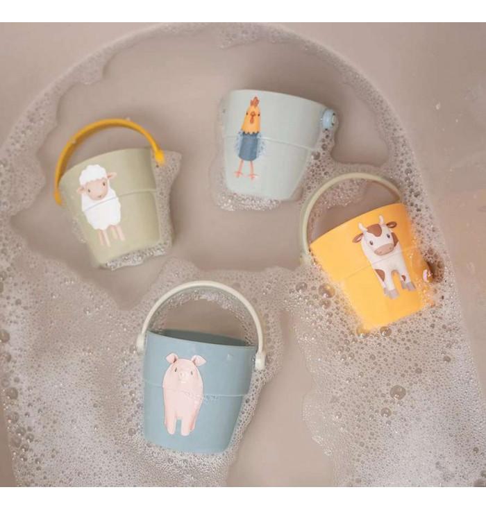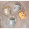 Stack, fill, pour and SPLASH! Your little one will love bath time with this set of 4 bath cups. They come in 4 colors and are illustrated with Little Goose and his friends. The size is exactly right for little hands and playing with the little buckets will help develop fine motor skills. Stack them, one on top of the other, to build and tear down a large tower. Or fill them with water and see different shapes come out. Splashes and laughter guaranteed!