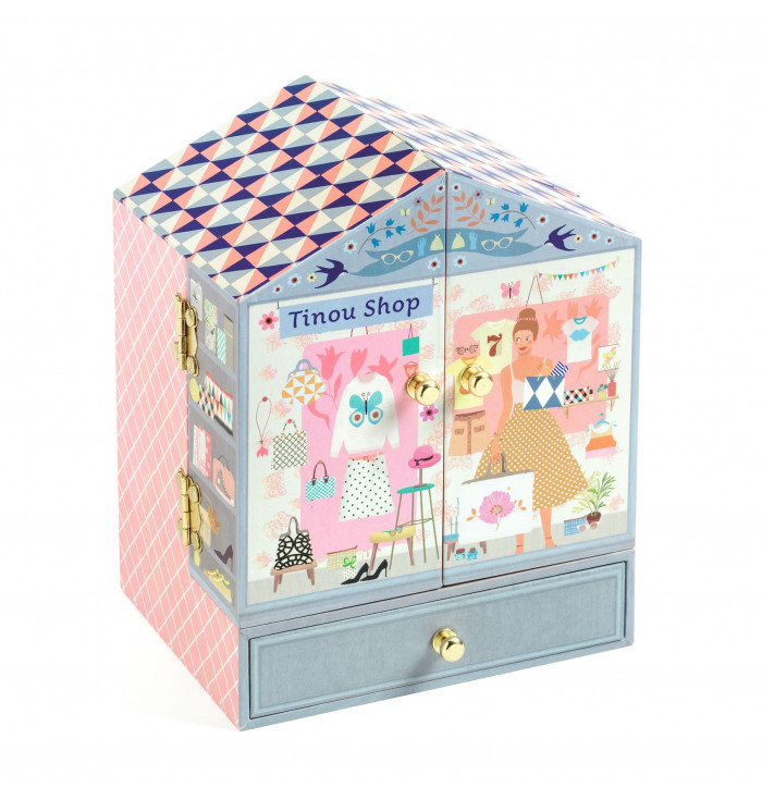 Tinou's Shop is a delightful, finely illustrated musical box with three drawers perfect for storing little gems and secrets.
