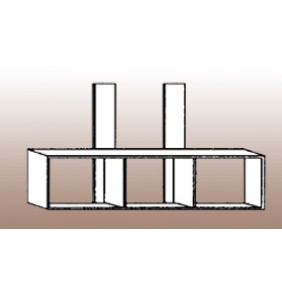 5 shelves with open compartments and two closed by a door. It can be fixed to the wall