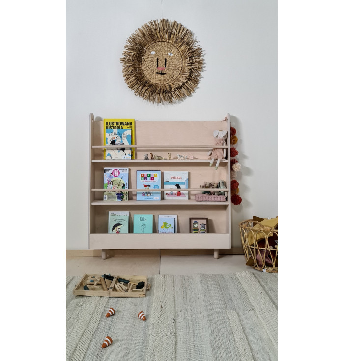 The 'BOOKWORM' library was based on the Montessori method. It guarantees free access and selection of books according to the principle that the child chooses the subject, the degree of difficulty and how long he wants to play. The bookcase has 3 large shelves where the book covers face forward to attract children's attention and encourage them to look at it. For older children it can also be a perfect place to store favorite figurines or soft toys.