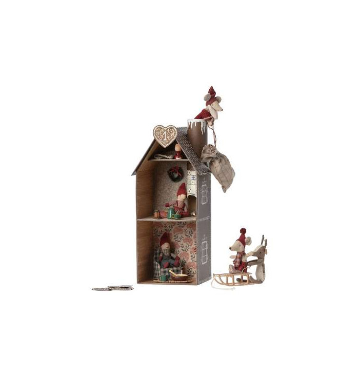 The Maileg gingerbread house is made for surprises. Add 4 Advent gifts and let your child decorate the gingerbread house every Sunday when a new gift is opened. Gift tags no. 1-4 and wood for the fireplace included. Furnishings not included.