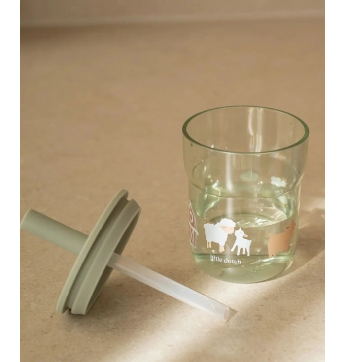 Children's glass 250 ml with straw - Little Farm - Little Dutch