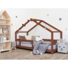This bed is produced according to the Montessori philosophy so that every little dreamer felt safely in it and could create his or her own world. The bed is hand-made of 60 mm thick squared timber. Attach the side panel to which side you want or you can remove it at any time. By ourselves, we lacquer the solid wood with ecological colors which are suitable for allergic people. The bed frame starts about 6 cm above the floor, which makes getting up very easy. The bed can bear up to 150 kg; therefore, you can read fairytales lying next to each other. Furthermore, you will get a slatted bed base for free.