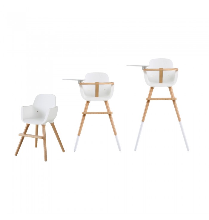 Ready to eat the world? The OVO high chair is one of Micuna's most iconic projects, recognized all over the world. It is sold as standard with the safety belt and tray, available in canvas or imitation leather. The OVO high chair is available in two colours: white with natural wood, and anthracite gray with warm mahogany. Complete your high chair with the different upholstery designs and make it more functional by converting it into a high chair with its set of legs available in two colours.