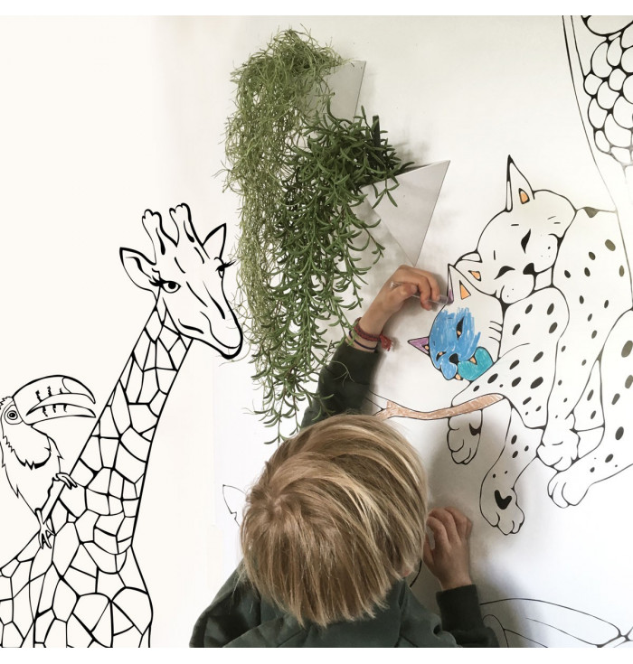 Colour the leaves and animals with the soft tones of colour wax to add some extra character to your wild wall, wipe all off and start over again!