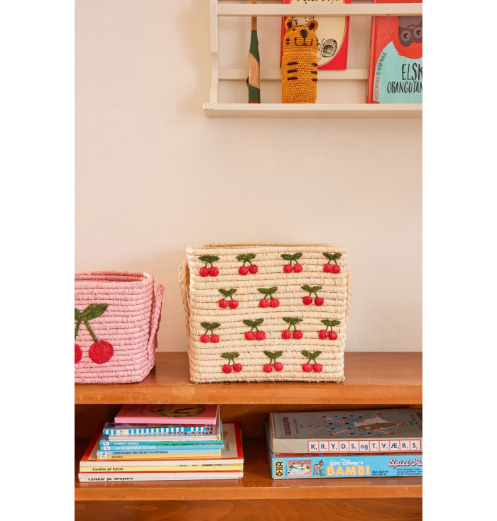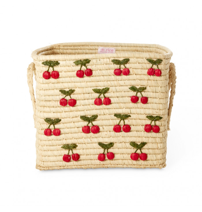 Fun and cute basket with red cherries... made of raffia, a natural material. It's the perfect size to store your favorite items or add a pop of color to any room. The basket is a true rice classic, so you can also find it in other colors and patterns./p>