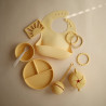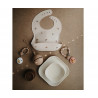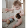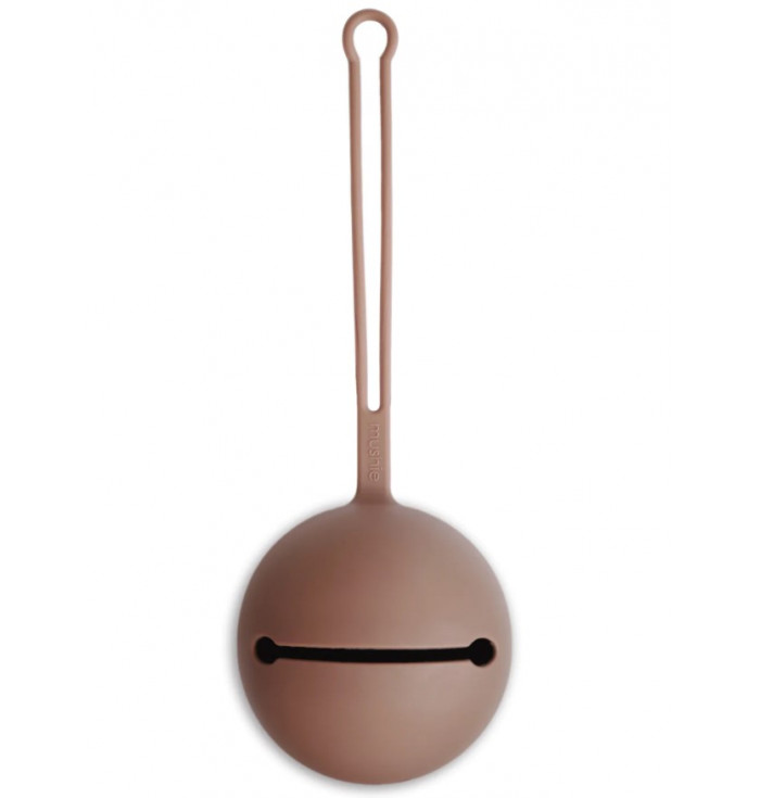 silicone pacifier protector in the shape of a vintage rattle, where you can store up to three clean and ready-to-use pacifiers. The strap allows you to hang it on your bag or stroller where you can keep them close at hand.