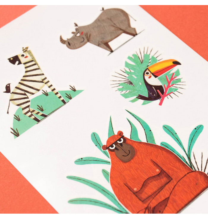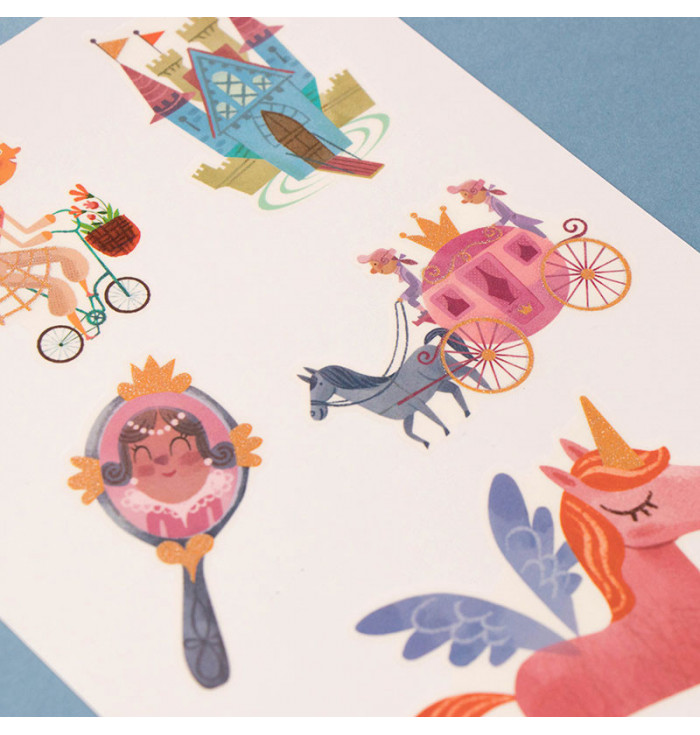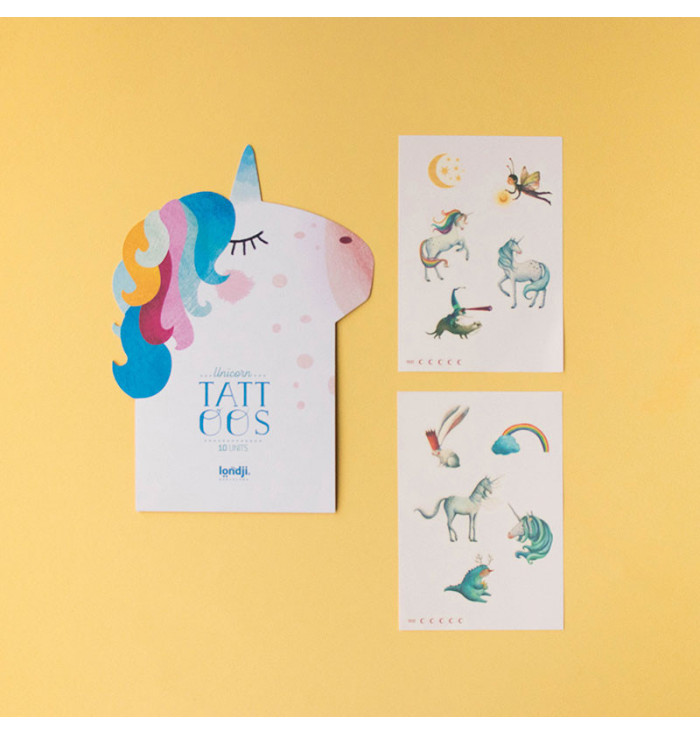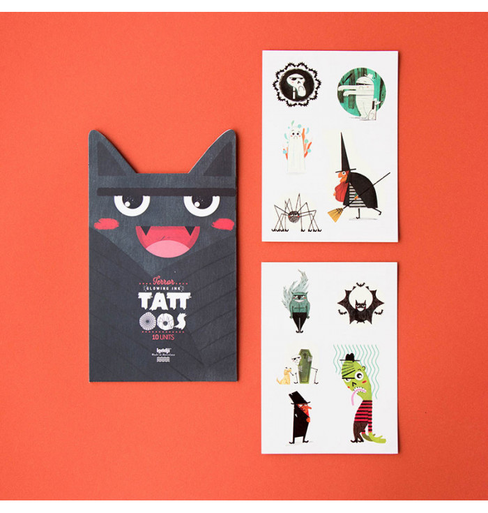 Londji tattoos from the Big Tattoos line are safe, non-toxic, fun and made in Europe! You can find cats, dogs, dinosaurs, forest animals and the princess, as well as vampires and werewolves of the "terror" version (that shine in the dark!).