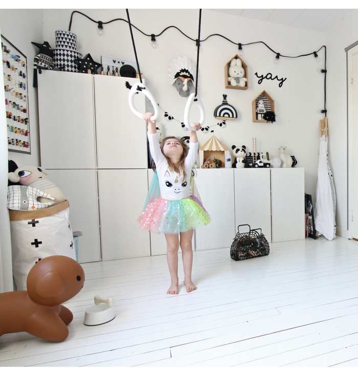 Included: a pair of rings, two rope closures, two swivels and two ropes.