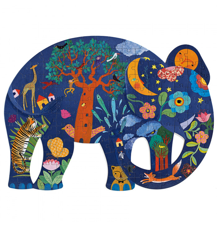 The Puzz'Art Elephant is a 150-tile puzzle. In a new format, without corners or edges, it brings the art of the puzzle back into play. Through the large silhouette, the children discover an elephant, in which an imaginary world comes to life.