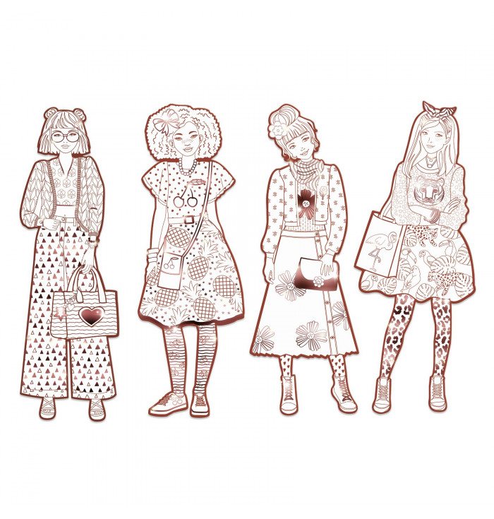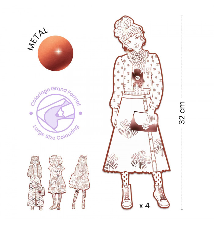 A large collection of fashion-themed coloring pages to have fun in many ways! Bright coloring pages, decorated with metallic areas. Thick papers to preserve your creations for a long time. An FSC® certified paper and cardboard product.