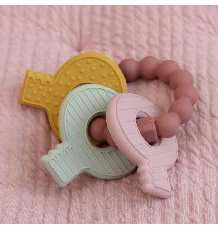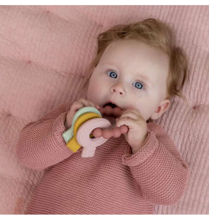 The arrival of the first teeth is a milestone for your baby, but not always pleasant! To relieve the pain, Little Dutch has designed a multifunctional teething ring in the shape of a keychain. It is a toy but also provides comfort and helps the new teeth come through. The teething toy has different textures, giving your baby plenty to explore. Specially designed to be easy for baby hands to grasp!