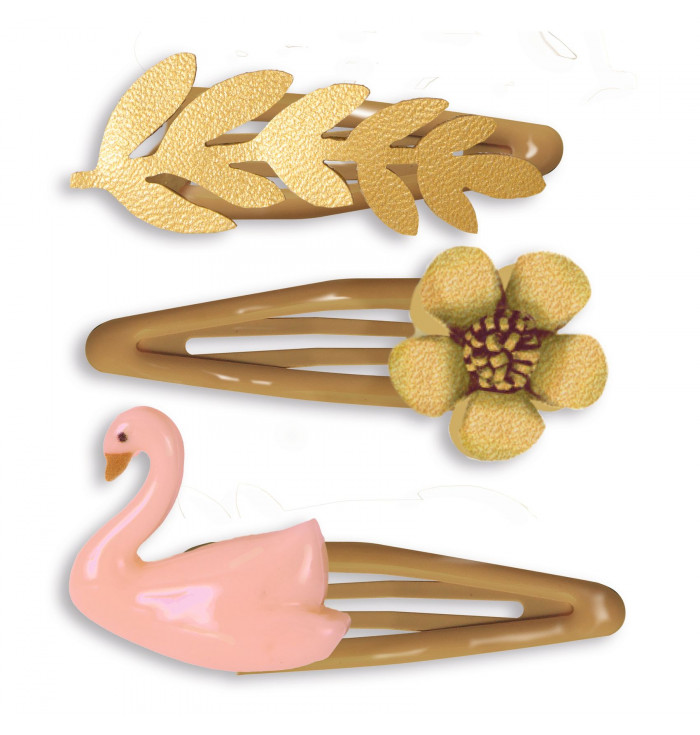 Made of metal, they are decorated with a leaf and a flower in eco-leather and an acrylic swan, to complete the children's style with grace and delicacy.