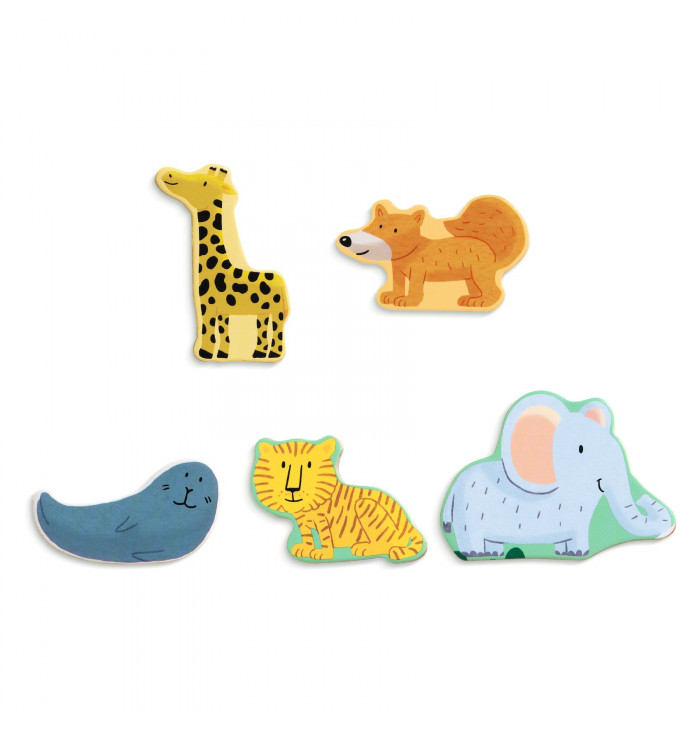 Children must place the 22 animals on the board by recognizing their shape and habitat. The colors under each tile help them easily find the right place.