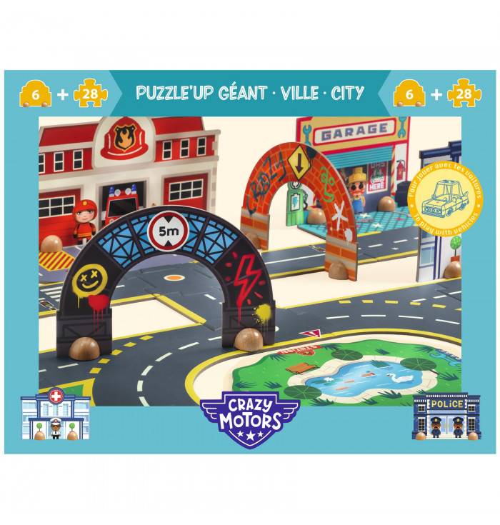 With Puzzl'Up, every route becomes an adventure: many road circuits to create and play with Crazy Motors vehicles!