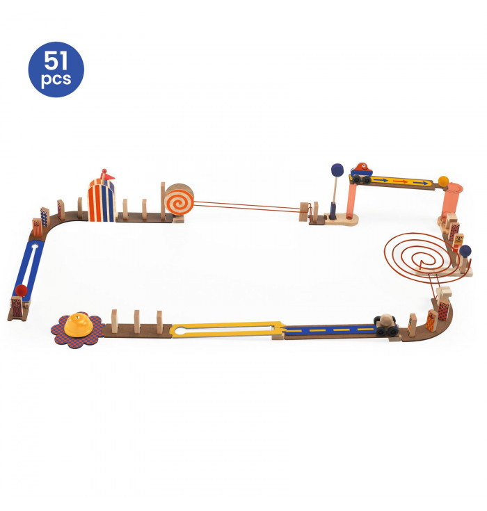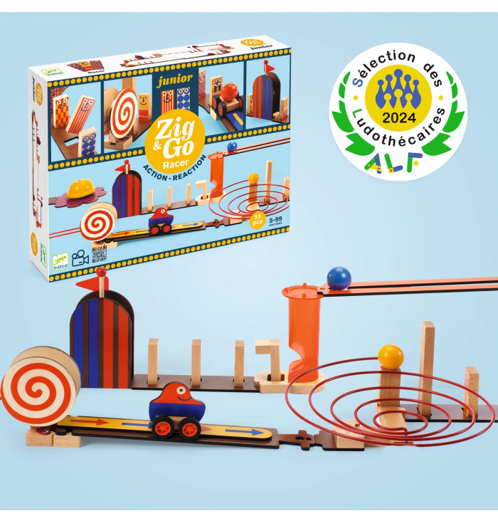 Racer is a fun wooden chain reaction, logic, and construction game designed for children aged 5 and up.