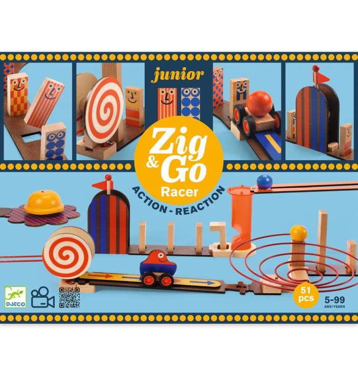 A set full of surprising details, with the cute Zig dominoes, funny little men that make every construction even more fun.