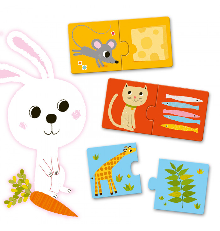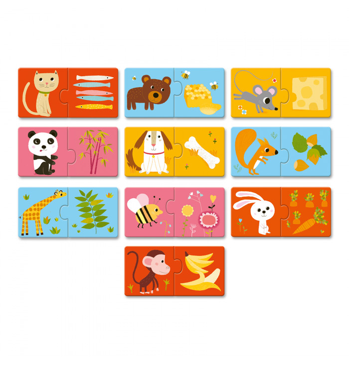 Puzzle Duo is an educational puzzle for toddlers, where children match the two pieces together. A first simple and playful association game. Self-correcting puzzle: only matching tiles form a perfect puzzle. A colorful box that is easy to carry thanks to the drawstring.