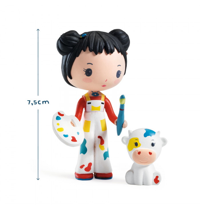 At her side is always Gribs, her sweet cow, who also proudly bears a few splashes of paint on her soft coat.