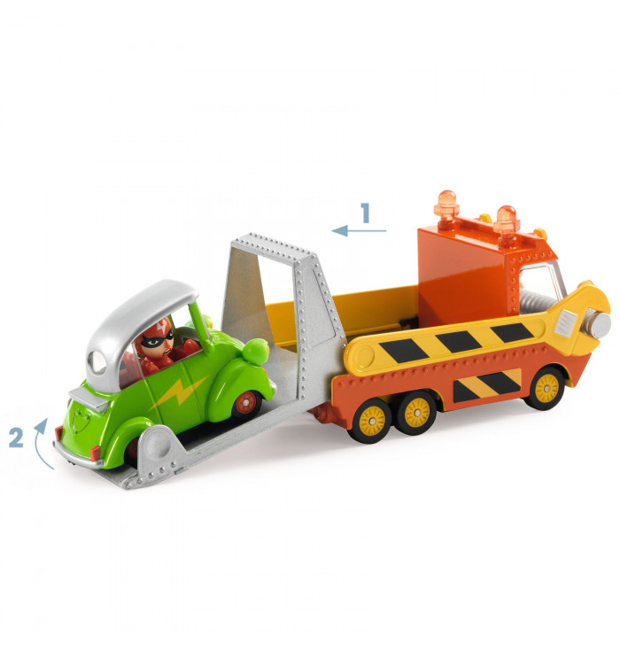 Robust, imposing, and super-durable, it's designed to tackle any rescue mission. Load the stranded car onto its platform, secure it, and off you go... straight to the nearest garage for a quick fix!