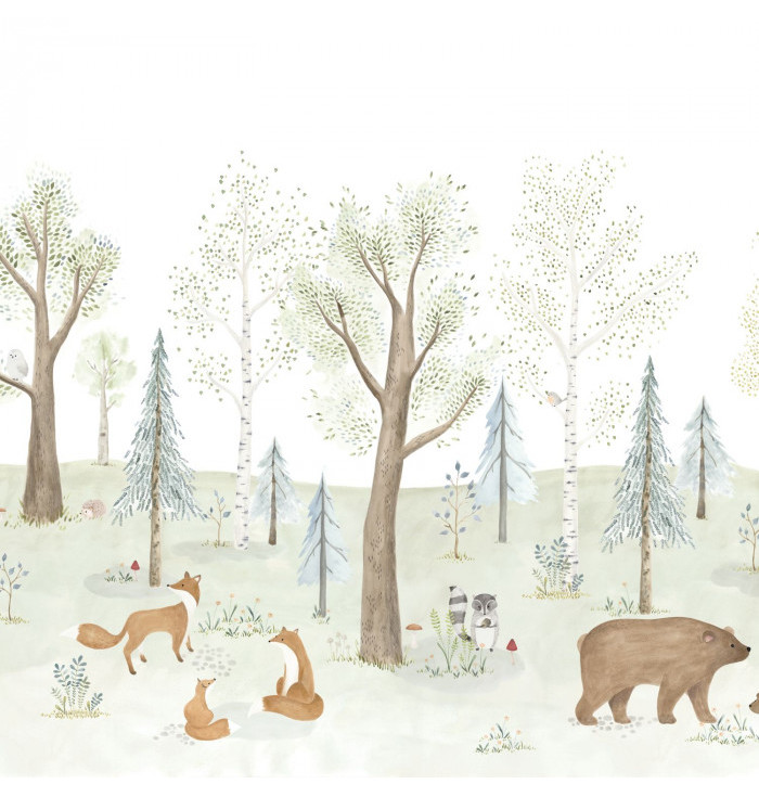 Welcome to a fairy-tale forest The foxes have stopped to watch Red Riding Hood go by, the hedgehogs are scampering around, the bear and her cub are looking for berries... This forest is definitely full of surprises! We love the gracefulness of the doe, as if she had just stopped before hiding behind the tall trees of this mysterious forest.