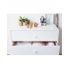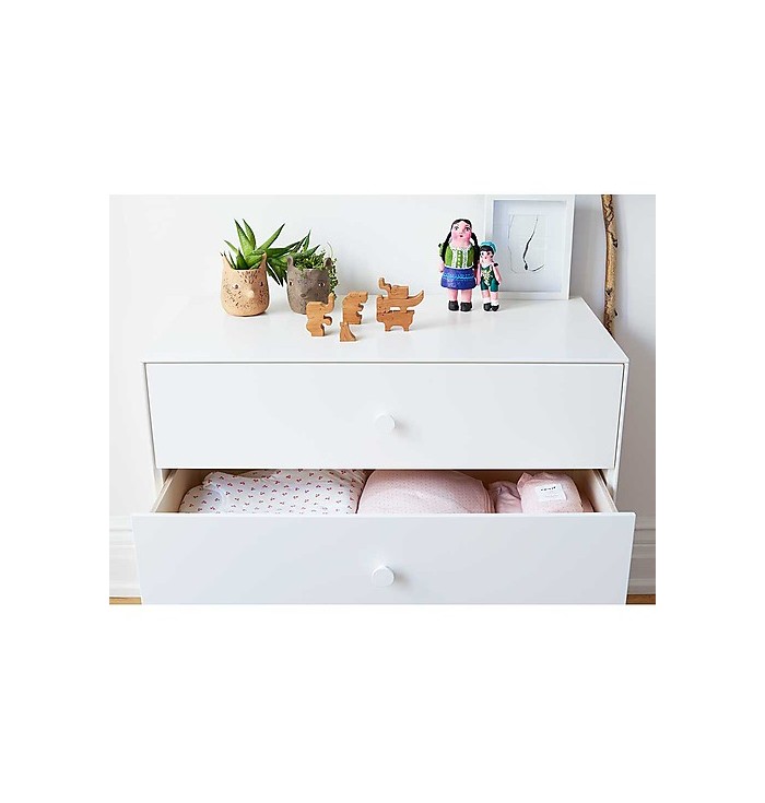 I 3 pratici cassetti offrono una valida soluzione salva-spazio che risolve in modo intelligente e funzionale i problemi di “ordine” che noi mamme conosciamo molto bene e se il bambino è ancora piccolo ecco che la cassettiera si trasforma magicamente in utilissimo fasciatoio con la semplice aggiunta di un materassino fasciatoio appoggiato.