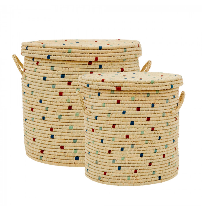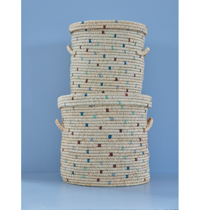 Cesto in rafia rotondo small - quadretti - Rice DK