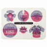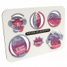 È fustellata per originare 6 dischi, pre-forati e pronti per essere appesi come e dove vuoi tu.