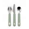 Il set include una forchetta, un coltello e un cucchiaio, perfetti per le prime esperienze a tavola.