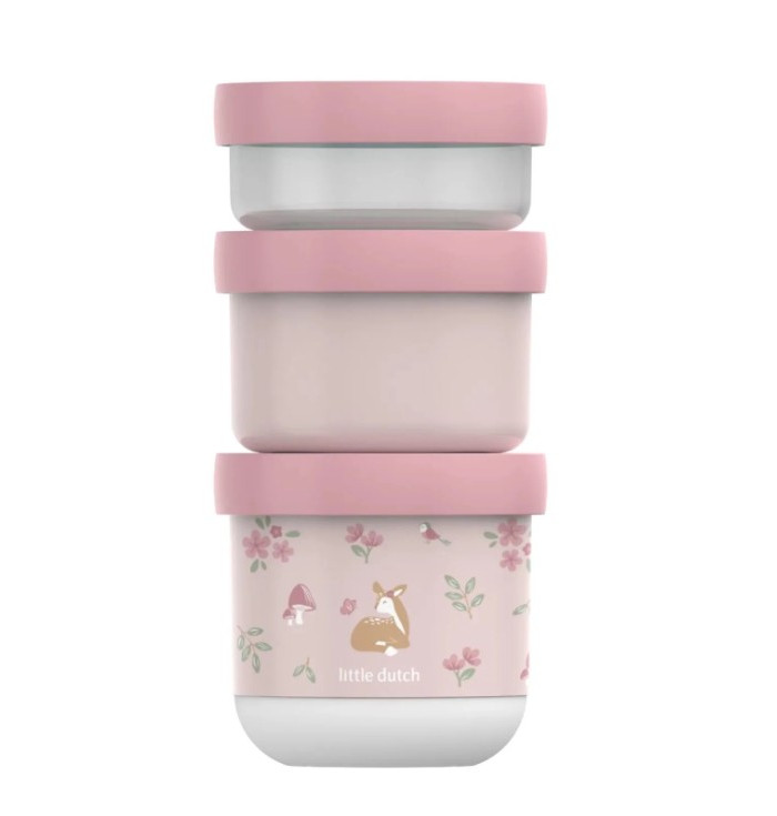 Scopri il set di 3 contenitori impilabili per snack con l’adorabile stampa Fairy garden.