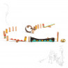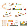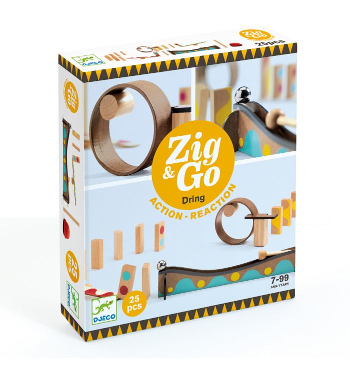 Contenuto: 1 gioco di costruzione composto da 25 elementi in legno e 2 biglie in metallo. 1 libretto di istruzioni di 16 pagine incluso.