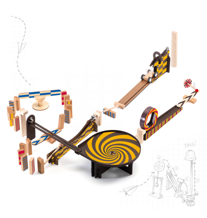 Le confezioni di questo gioco (dai 7 anni in su) sono compatibili tra di loro, per creare percorsi di azione-reazione ancora più ingegnosi.