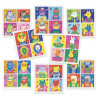 Contenuto: 8 sfondi stampati (20 x 20 cm), 8 fogli di adesivi, 1 libretto a colori con le istruzioni punto per punto.