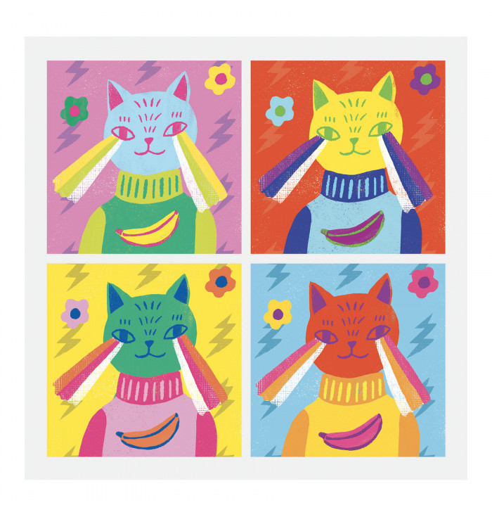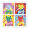 Un'attività di collage che si propone di scoprire lo stile di Andy Warhol, il grande maestro della Pop Art. A poco a poco, gli adesivi vengono aggiunti e sovrapposti per comporre una galleria di ritratti divertente e colorata dove i modelli sono animali personificati.