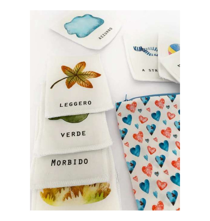 Il gioco consiste in 14 morbidose carte contenute in un comodo astuccio con cerniera da poter portare comodamente sempre con se.