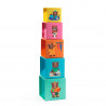 5 cubi illustrati che ospitano 4 animali per giocare e costruire una bella casa. Diverse possibilità di gioco: i bambini possono impilare i cubi di cartone per creare una torre oppure possono inserirli gli uni negli altri. Possono anche giocare sul pavimento e ricreare numerose decorazioni per la casa, oppure possono anche giocare solo con gli animali. Belle storie da inventare con questo gioco molto completo.