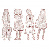 Una sfilata di damigelle con preziosi abiti da colorare a piacere! Quattro grandi sagome di 32 cm di altezza rappresentano abiti ricchi di motivi e decorati da aree brillanti per rendere ancora più affascinanti i modelli!