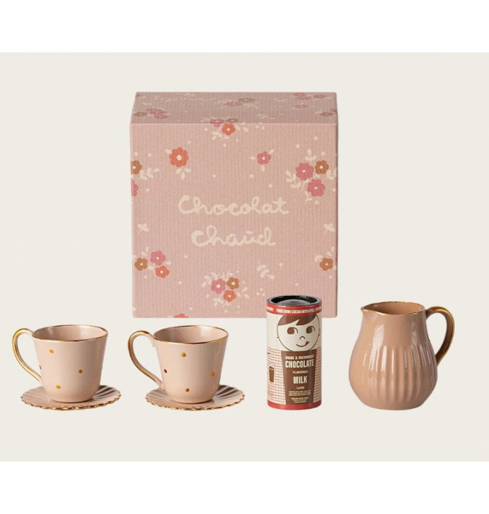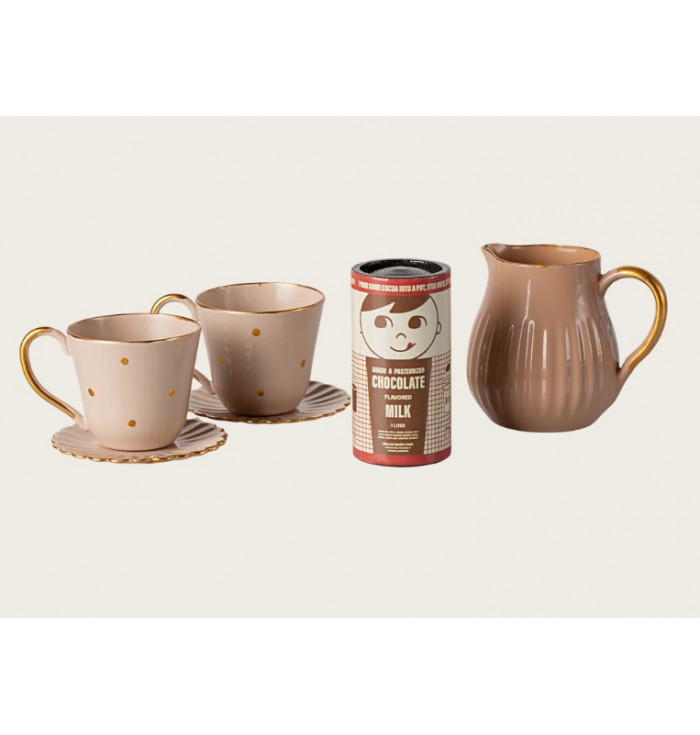 Questo set per la cioccolata calda in formato Mini è pensato per rendere magici i pomeriggi in compagnia: contiene 2 tazze, 2 piattini, una brocca e naturalmente la cioccolata, pronta per essere servita.
