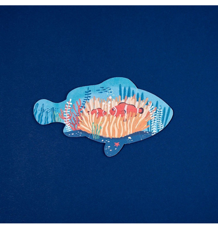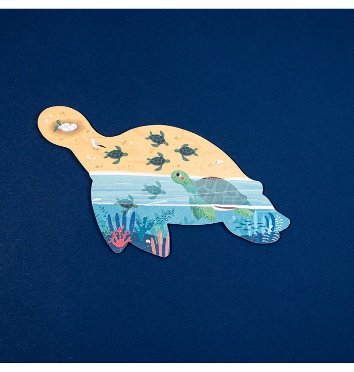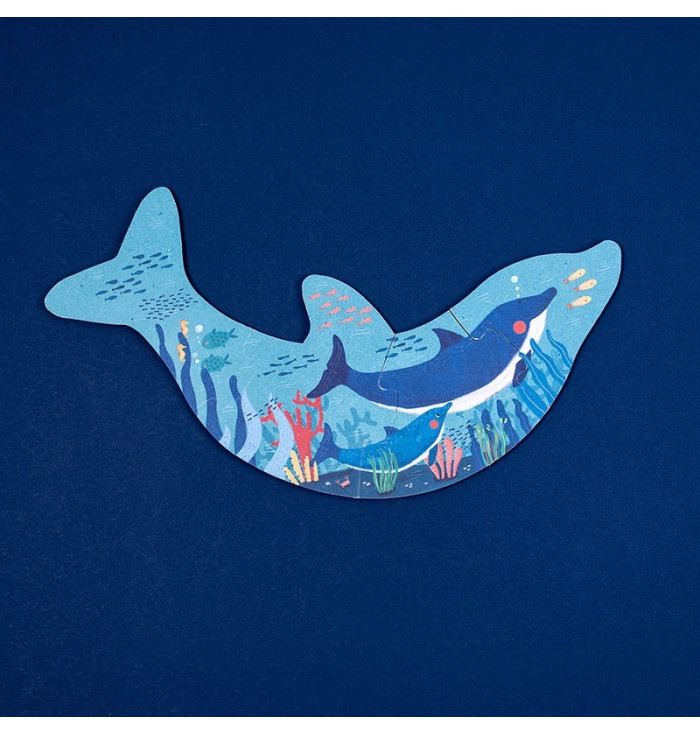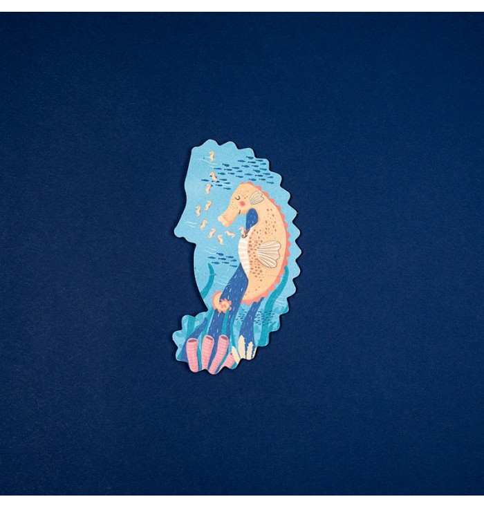 Immergiti nelle profondità dell'oceano! Tra onde calme e uno sfondo sottomarino colorato vivono magiche creature marine: la stella marina che si allunga placidamente, il cavalluccio marino che cavalca le onde, il delfino che salta gioiosamente, lo squalo che nuota maestoso, il pesce pagliaccio che gioca tra i coralli e la grande balena che guida il suo cammino. Con questo set di 7 puzzle progressivi e reversibili, i più piccoli scopriranno gli animali marini e, sul retro, i loro cuccioli, aggiungendo un tocco tenero e divertente al gioco.7 puzzle reversibili e progressivi con personaggi da 2, 3, 4 e 5 pezzi per far scoprire ai più piccoli gli animali marini. Sostenibile. Ideale come primo puzzle.
