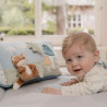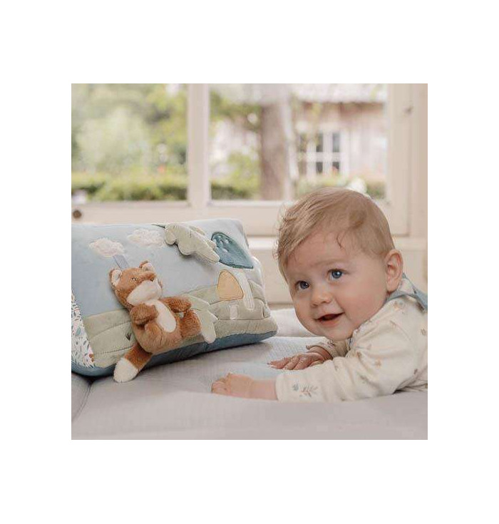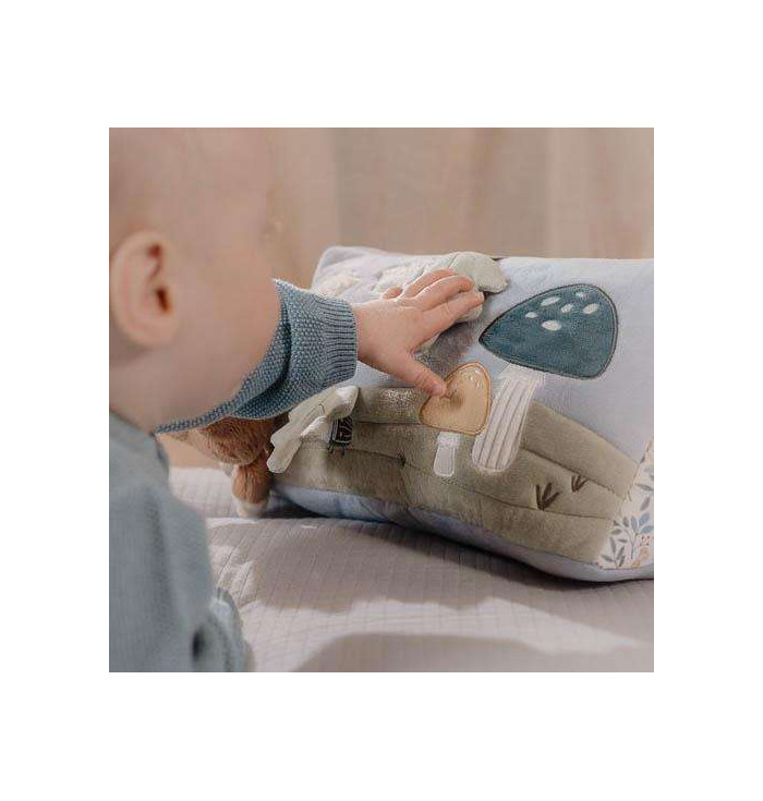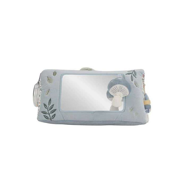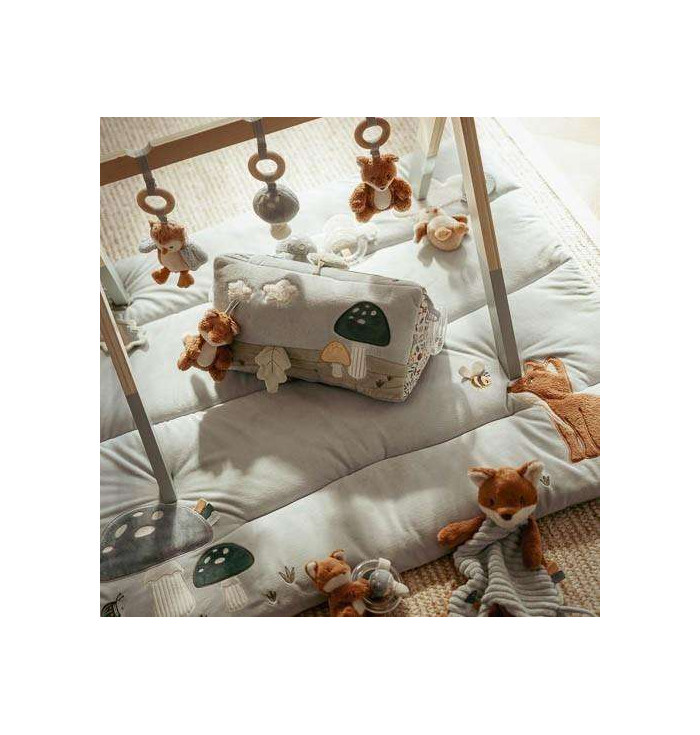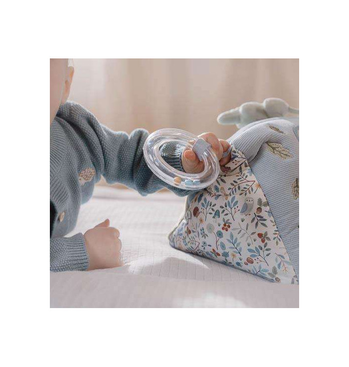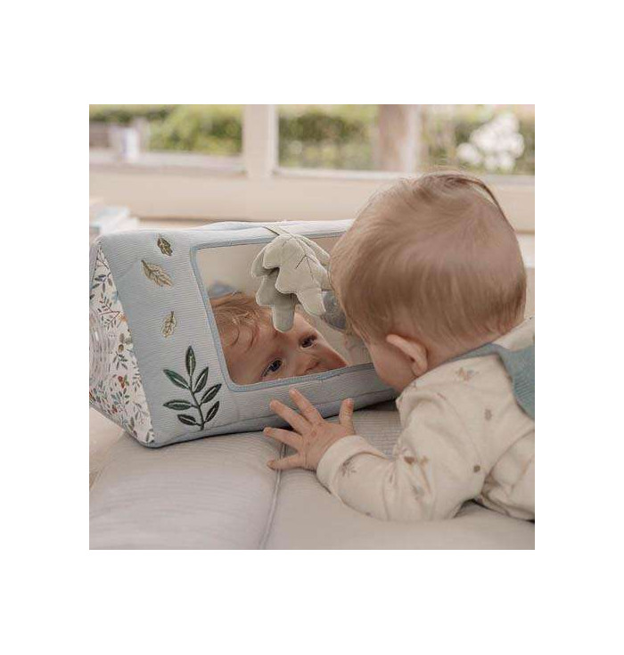 Questo triangolo attività multisensoriale accompagna i bambini nelle prime avventure mentre sono sdraiati a pancia in giù, stimolando curiosità e coordinazione. Tra le sue sorprese ci sono le ali fruscianti della gallina, un piccolo specchio, un annaffiatoio sonoro e tante texture divertenti tutte da toccare.
