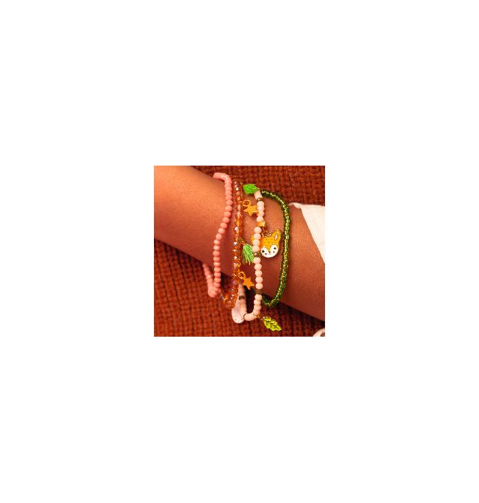 Contenuto: 1 braccialetto con perline acriliche, 1 ciondolo a forma di volpe e 1 ciondolo a forma di foglia (in metallo smaltato).