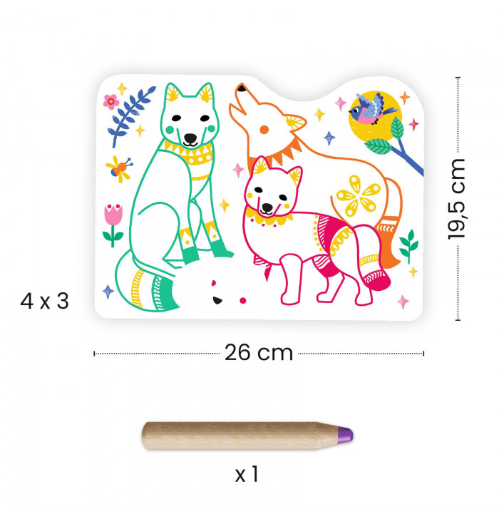 Una simpatica pochette con 12 immagini da colorare e un grande pastello colorato, facile da impugnare anche per i più piccoli. Il bambino colora le famiglie di animali e scopre cosa si nasconde nell’immagine.