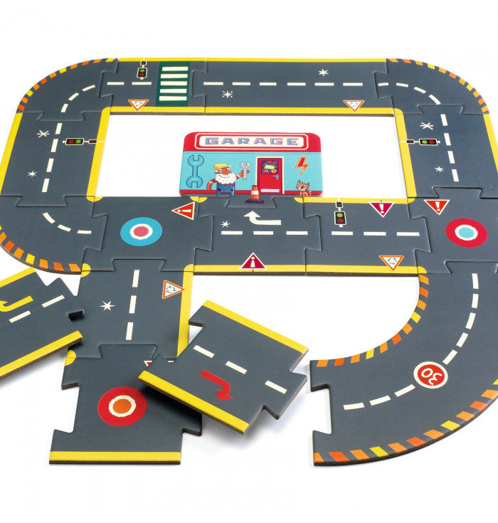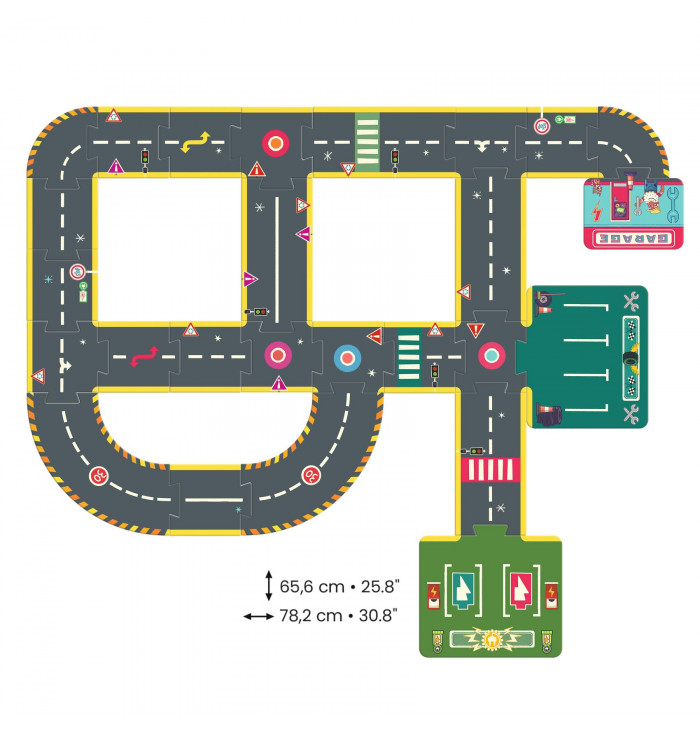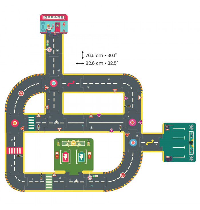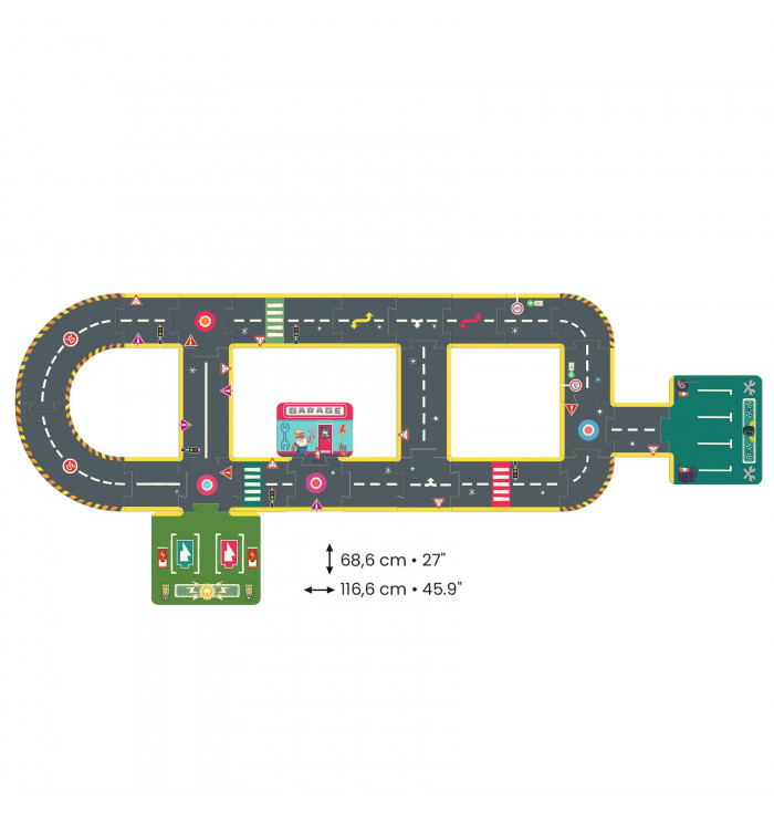 Con 26 pezzi modulari, questo set permette di creare infiniti percorsi personalizzati: i bambini possono immaginare, assemblare e reinventare ogni volta nuove piste per gare spettacolari.