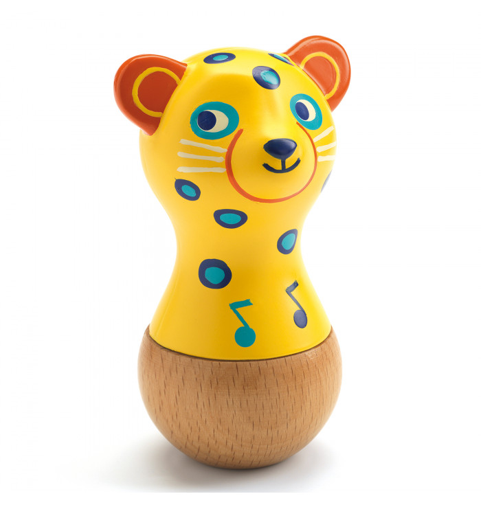Una dolcissima maracas in legno e plastica a forma di giaguaro, ideale per i primi approcci alla musica.