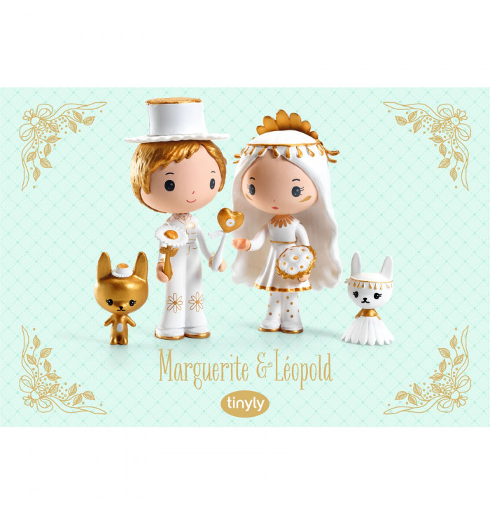 Marguerite e Léopold, insieme ai loro inseparabili compagni Margo e Léo, formano un elegante duo di figurine bianche e dorate appartenenti all’universo poetico dei Tinyly.