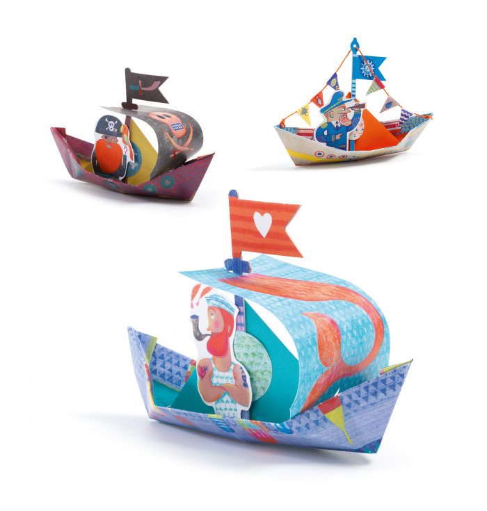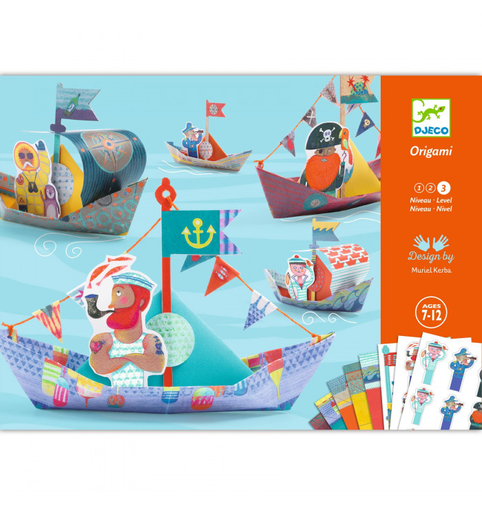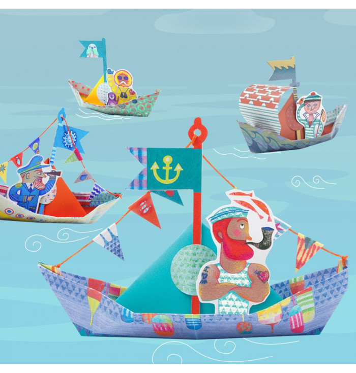 Seguendo le istruzioni del libretto, i bambini possono piegare i fogli stampati e realizzare le loro imbarcazioni, per poi personalizzarle con gli accessori inclusi.