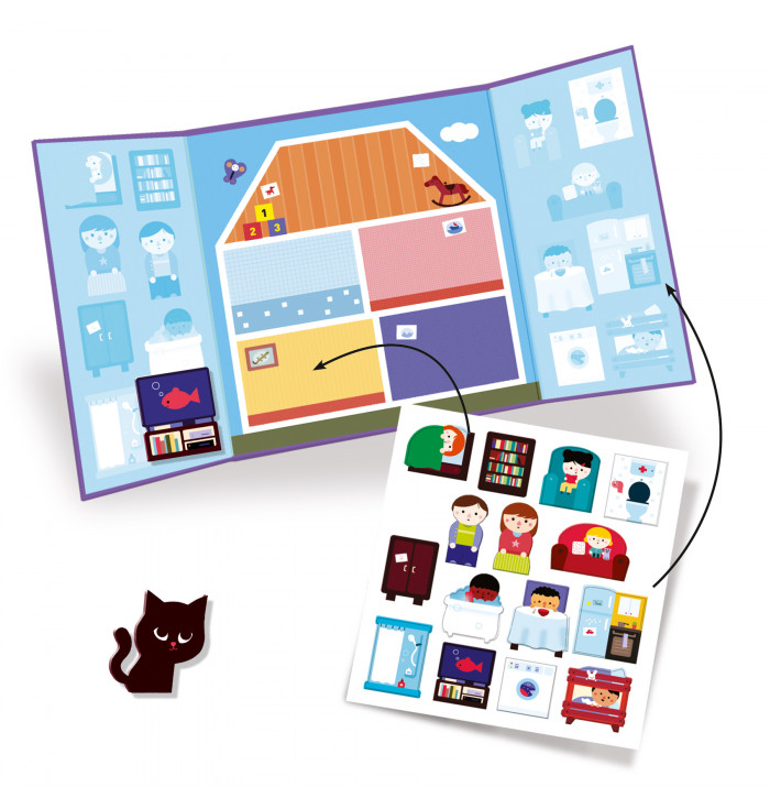 Un set di scenari e adesivi spessi e riposizionabili, pensato per giocare all’infinito.