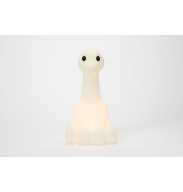 Dino Nova è un compagno dalla sensazione morbida e dalla luce soffusa, realizzato in silicone di alta qualità a prova di bambino (come i ciucci) e dimmerabile su 6 impostazioni.